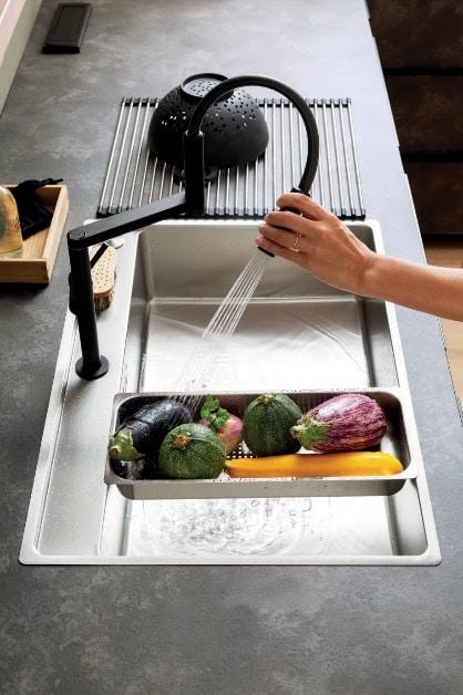 La cocina es una estancia en la que se gasta mucha agua, a veces sin ni siquiera darse cuenta: fregando platos, limpiando, preparando las comidasPara evitar este desperdicio, se puede reutilizar el agua de cocción para otros usos, comprar un lavavajillas o poner un grifo monomando con regulador de agua como el que propone Mobalpa, que reduce a la mitad el caudal de presión, evitando así fugas y reduciendo el consumo de agua.