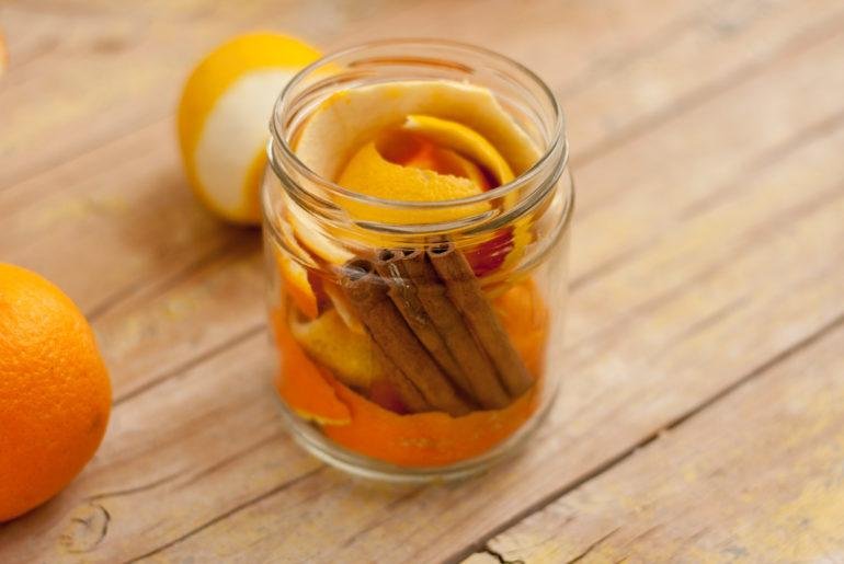 Creo que no voy a descubir el mundo a nadie con esta idea porque es uno de esos trucos de la cultura popular, pero merece la pena que lo mencione porque es muy efectivo, natural y ecológico. Quizás, incluso, ya lo hayas probado en casa. Consiste en introducir dentro de un tarro de cristal una mezcla de corteza de naranja y canela y añadir alcohol de farmacia. Deja reposar y tu ambientador dará un olor muy casero a tu hogar, perfecto para la temporada de otoño.