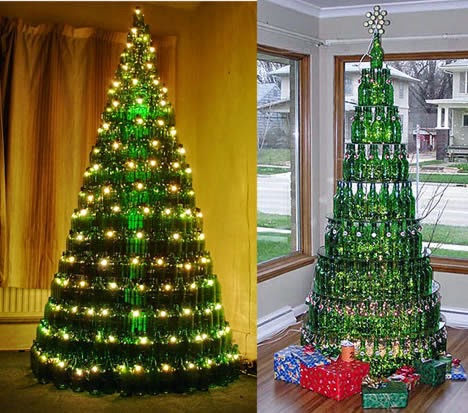 3. El siguiente árbol nos lo enseñan en Ecologico jardineriaon. Un árbol realizado con botellas de vidrio y distintas bases de cristal. Perfecto para los amantes de la Navidad y el reciclaje. Pero tened cuidado si tenéis peques en casa, pues es demasiado frágil.
