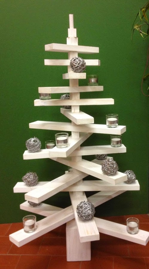 1. Primero os enseñamos la propuesta de Taller Estuco, que nos enseña este sencillo árbol de Navidad hecho con listones de pino, pintados en color blanco. Pero que podéis pintar de color dorado, plateado o como prefiráis.