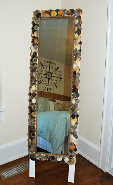 Como no nos dimos por satisfechas seguimos buscando y en el blog de saltwater living encontramos una gran idea para redecorar un espejo simple y darle un toque especial, aunque tambien puede servirte si el marco está algo dañado, lo reparas y depaso le das un toque playero.