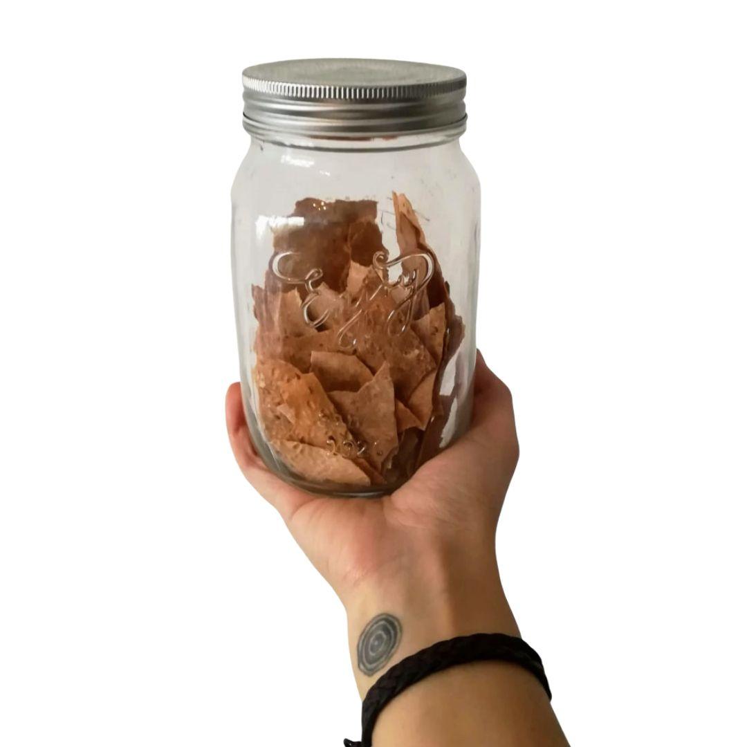 La mayor parte de mis frascos de alimentos son botes de cristal reciclados de los envases de conservas en vidrio y de tapa metálica. Los utilizo para conservar las mermeladas y salsa de tomate. También para guardar galletitas o crackers caseros como los de la foto.Manga pastelera de tela