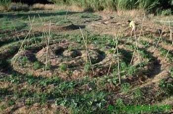 Para crear el huerto se hacen bancales de 120 cms de ancho, 50 cm de altura y alrededor de 80 cm de separación entre ellos, cubiertos con acolchado ya sea de paja, lana o restos orgánicos que actúan como un filtro protector entre la superficie de la tierra y los gases atmosféricos, evitando la fuerza desecante del sol y la compactación y erosión producida por la lluvia y el viento.