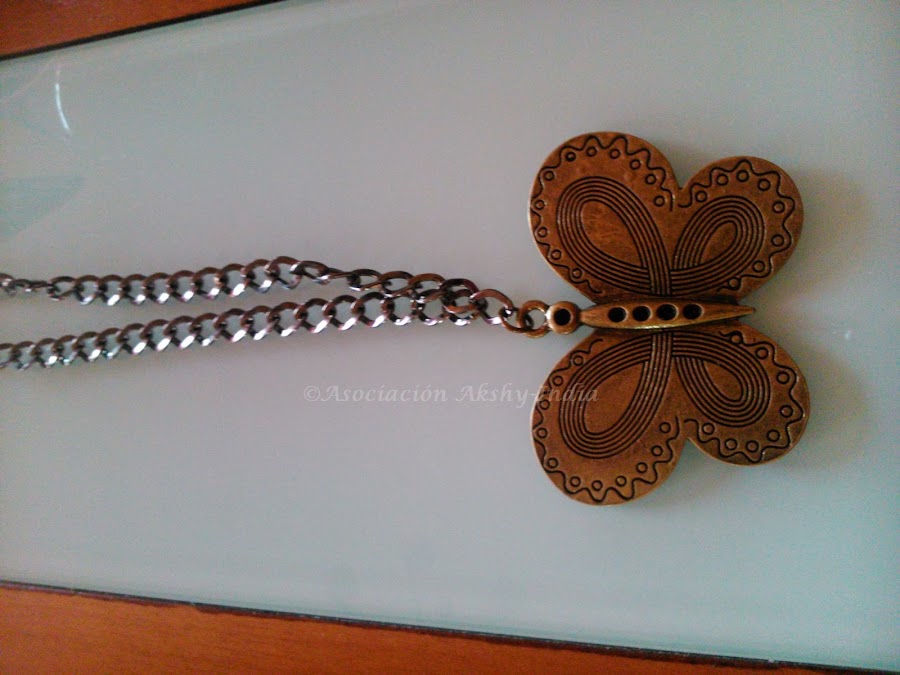 Dos años después, una vez más Isabel nos ha sorprendido colaborando esta vez realizando bisutería para vender y recaudar fondos con el mismo propósito de comprar material educativo.