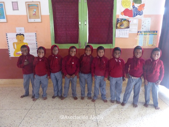 Además pudimos comprar ropa caliente para los 8 niñas y 9 niños de la clase nursery, los más pequeños. Pantalones largos para ellos y leotardos para ellas para que no pasen frío este invierno en sus piernecitas. Junto a ello también jerseys y bufandas. La mayor parte de estos niños no cuentan con ropa de abrigo en casa y como consecuencia se enfrían mucho y se ponen malitos en invierno.