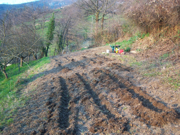 Una vez eliminado las malezas, aramos toda la tierra y preparamos las eras para sembrar las patatas.