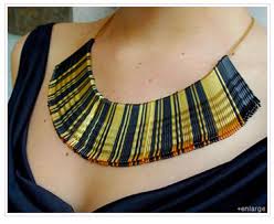 Horquillas de peloOriginal y sencillo de realizar. En tonos metálicos queda muy elegante, si le queremos dar un toque étnico podemos pintarlas de colores, o haciendo formas geométricas. Las horquillas quedan bien sobre todo en collar cortos, y la elaboración no puede ser más fácil de hacer. Basta con pasar las horquillas por el cordón, y si queremos que queden fijas, le podemos aplicar un poco de pegamento. Es importante recordar que si vamos a hacer un collar corto, debe tener un cierre trasero.