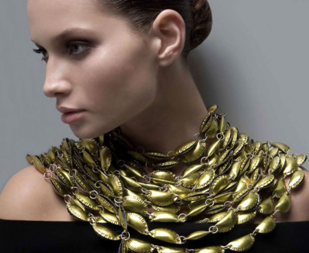 Chapas de botellaIncreíblemente original el resultado. Con esta idea se pueden hacer diferentes composiciones y diseños. Nos encanta porque es muy moderno pero muy elegante, y la elaboración es muy sencilla. Basta con ir doblando las chapas sobre el cordón, o ensartarlas en anillas como en la foto.