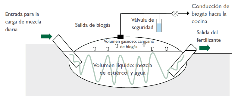 El biodigestor del domo flotante (utilizado principalmente en India) consiste en un tambor, el cual puede ser tanto de acero como de otros materiales unido a un reactor con paredes de ladrillos u hormigón.