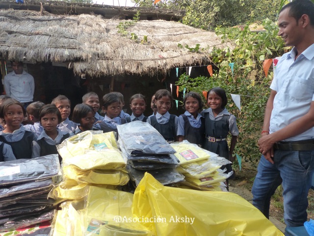 Con la ayuda de todos vosotros hemos podido comprar pantalones largos para los niños, leotardos para las niñas y camisas para los 38 niños de la escuela Kamal. De esta manera cuando venga el frío este invierno estarán más calentitos.