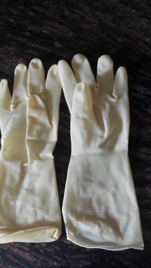 Ponerse los guantes es importantísimo. En la caja del tinte de Khadi vienen un par de guantes de plástico pero yo utilizo unos de silicona.