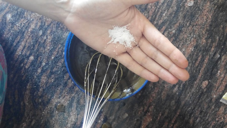 Mi paso extra es añadir sal a la mezcla para ayudar a la fijación del pigmento.