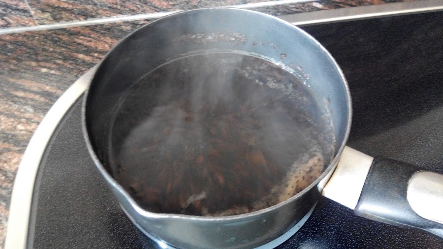Infusión de té negro (agua + un puñado de planta seca de té negro)