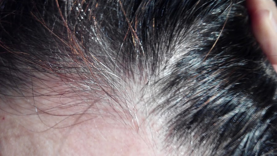 Esta foto es sin flash, dentro de casa. Podéis ver algunos reflejos cobrizos y aunque en la foto no se aprecia bien en la zona de la frente hay un buen matojo de canas.