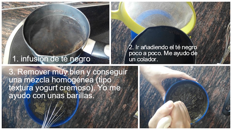 En mi caso lo hice (como siempre, incluso cuando usaba la henna Rojo Amla y Jatropha) con té negro. La cantidad de líquido que vamos a necesitar es el doble (y un poquito más) de los gramos de henna (en mi caso, al utilizar 100 gramos de henna, necesitaré 250-300 mililitros aprox de infusión pero como la dejo un rato que vaya infusionando y el agua se evapora, añado unos 400 militros de agua a la hora de hervir).