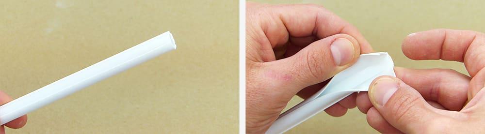 Para colocarlo solo tenemos que medir el hueco y cortar un trozo de esa medida. Se corta fácilmente con tijeras, luego retiramos el papel y lo llevamos a su sitio.