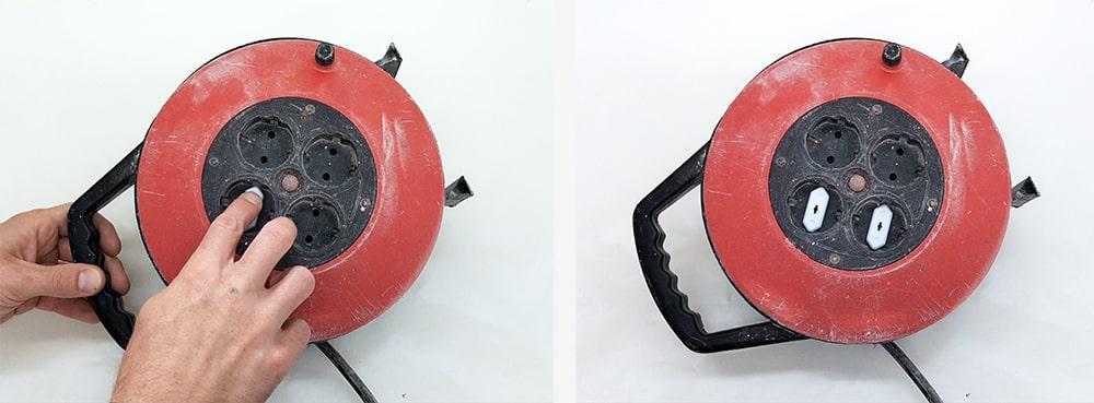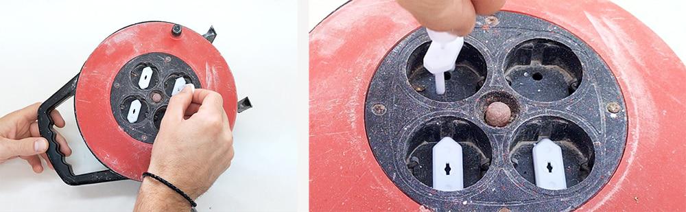 Tenemos que colocar los protectores en las tomas haciendo presión contra ellas. Y para poder retirarlos, solo tenemos que meter la lave en el agujero, girar un cuarto y sacar. Es realmente sencillo y sin embargo dejarás tu base múltiple completamente protegida frente a cualquier agente externo.