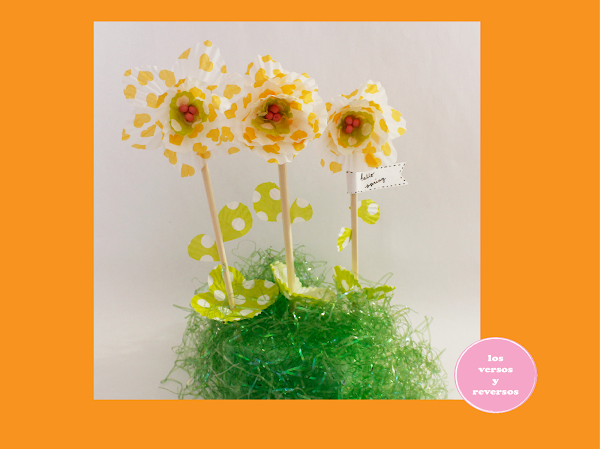 Así quedaron las flores con moldes de cupcakes y palillos chinos, ¿te gusta re-utilizar?