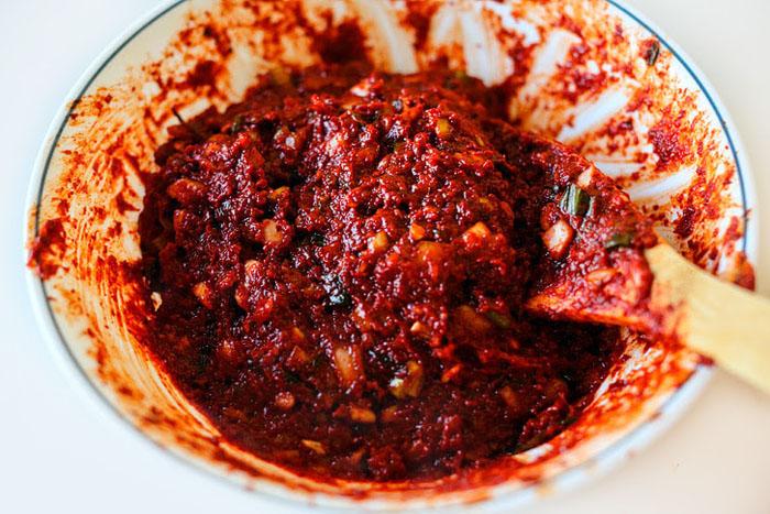 1. El kimchi: acá me referiré a los ingredientes sólidos que darán cuerpo a la preparación.2. La pasta: sería el “engrudo” que vamos a hacer para bañar nuestros vegetales y es la clave de nuestro kimchi. La harina de arroz es necesaria para que actúe como aglutinante para que quede una pasta homogénea.