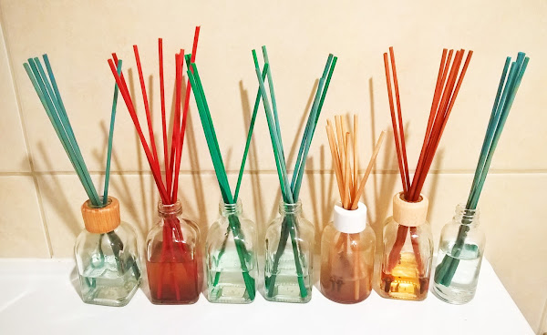 Otra buena idea: Si aún así te parece demasiado complicado preparar el líquido con aroma para rellenar un mikado, puedes usar colonias infantiles frescas, tipo Nenuco, o Heno de Pravia, rebajadas con agua.