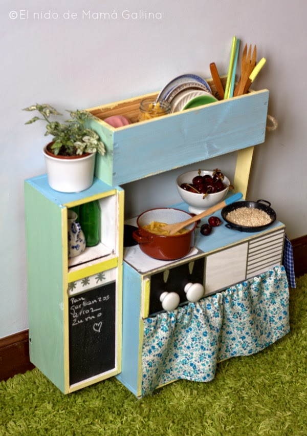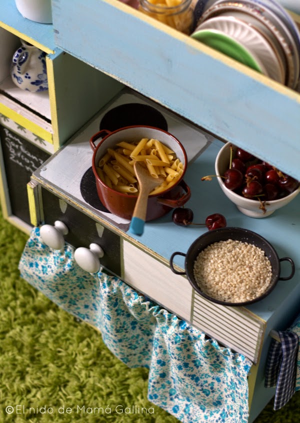 A mí tampoco me ha importado nunca que mis hijos se manchen cuando jugaban y he disfrutado mucho viéndoles hacerlo.Ya son muy mayores para jugar con estas cosas, prefieren el ordenador o la Xbox, pero me apetecía hacer esta cocinita y cuando la han visto han dicho que ¡mola mogollón!