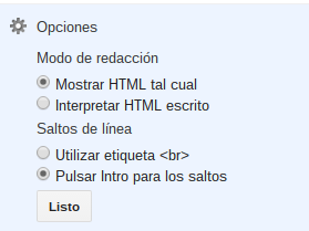 4.- Por única vez configurar las opciones de la entrada (veremos que en las entradas sucesivas la opción configurada ya queda fija).