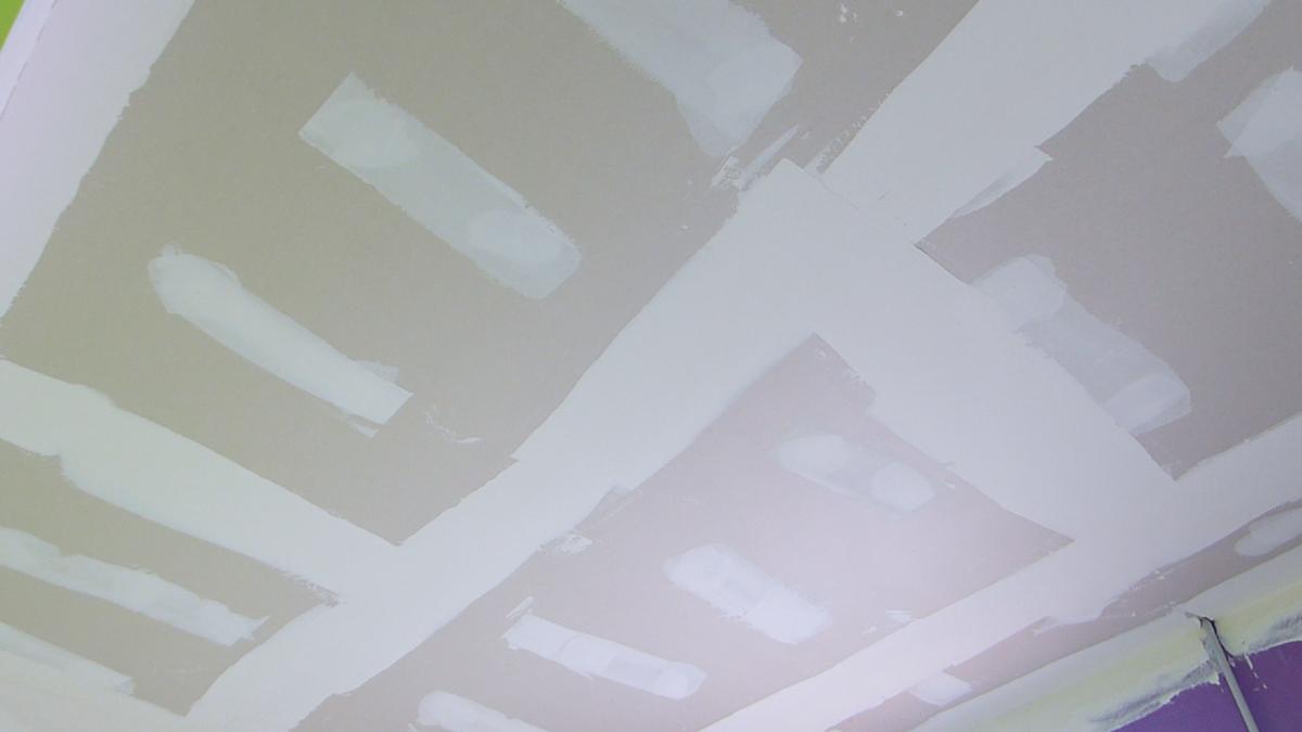 Vierto la imprimación sobre la cubeta, impregno el rodillo, retiro el excedente y comienzo a darle al techo. Lo imprimo de la misma manera que hice con el tabique, moviendo el rodillo en todas las direcciones, de esta manera cerramos la pororsidad del pladur y evitamos así la absorción excesiva de pintura que nos crearía irregularidades de tonalidad en el resultado final.