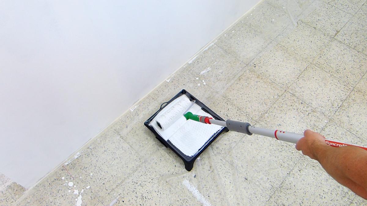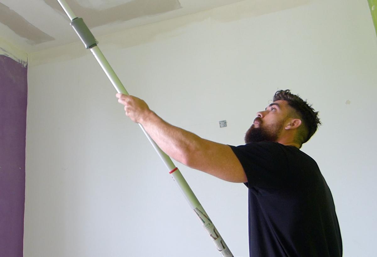 El alargador es muy ligero por lo que se hace bastante fácil pintar con él, continuo dándole a todo el techo hasta terminarlo por completo. Con una capa del producto será suficiente.
