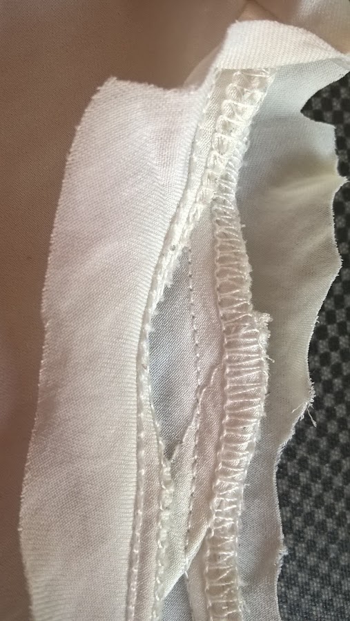 Simplemente enrollo la tela que me sobra (ese centímetro que hemos dejado de margen) y una vez enrollado, lo cosemos.