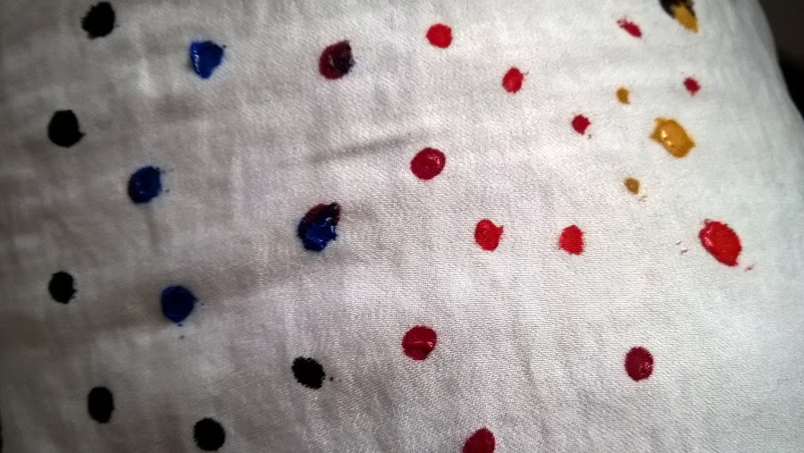 Eso si, cuando pintemos la camiseta, hay que poner algún trozo de papel o plástico, para que no traspase la pintura y nos quede toda la parte trasera manchada.