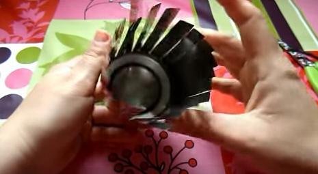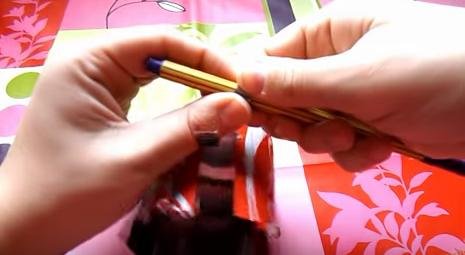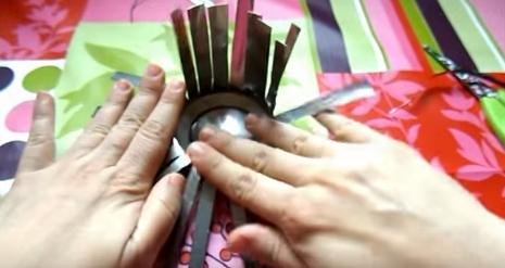 5. Coge una tira y con ayuda de un bolígrafo enrollalá sobre si misma hacia atrás.