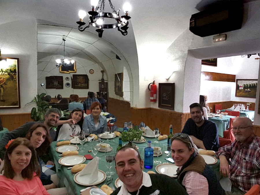 N de Casa Nano: Antes de realizar una visita monumental de Mérida hicimos una parada en Casa Nano. El dueño, Nano, nos reservó una sala para deleitarnos con su revuelto extremeño y su solomillo de cerdo ibérico al ajillo. La comida nos permitió estrechar vínculos y conocernos un poco más, eso sí, como no, todo ello regado con cervezas, vinos y licores varios.