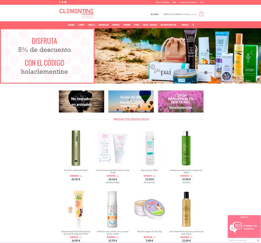 Online vais a encontrar el mismo asesoramiento cercano, pero a distancia, aunque parezca contradictorio. Son muchas las clientas que nos envían sus consultas por e-mail y les respondemos casi de inmediato. Otras nos llaman por teléfono y nos cuentan su caso y sus necesidades, y nos piden asesoramiento antes de hacer el pedido, y otras muchas utilizan el chat de la web para hablar en tiempo real. Hoy en día la tecnología nos permite tener casi, casi la misma cercanía con los clientes online que en tienda y así nos lo hacen saber quiénes contactan con nosotros, por sus comentarios en el chat y en emails de agradecimiento, que al final es lo que más nos reconforta; como he dicho antes, Clementine no es sólo una tienda física, ni sólo una tienda online: es una tienda que tiene lo mejor del comercio local, que es la cercanía, la atención personalizada, el feedback directo y concreto, el conversar con los clientes, conocerlos, etc… con lo mejor del comercio online, que es tener al alcance de la mano cientos de productos y poder comprarlos desde cualquier lugar, por eso a la web también la dotamos de las ventajas de la tienda física, nos encanta el contacto con nuestros clientes, ya sean físicos u online.