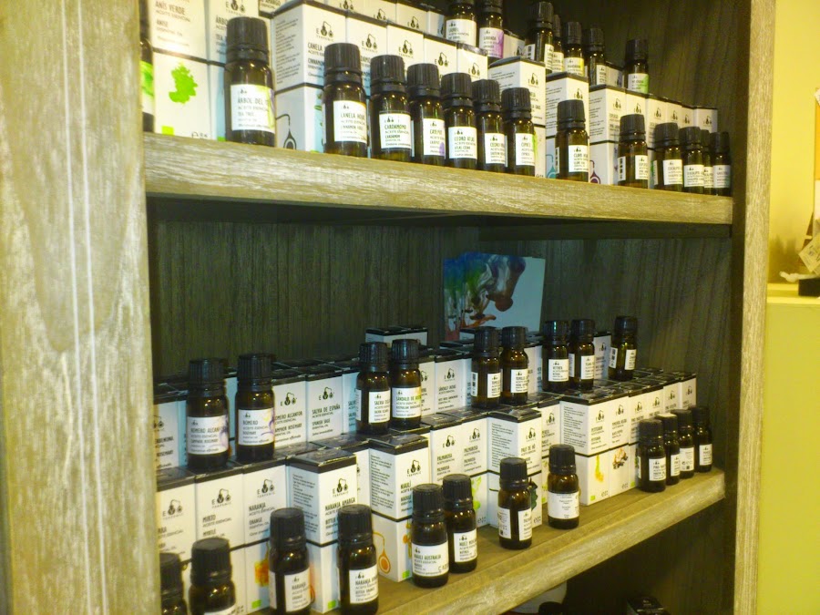 Siguiendo el recorrido por su tienda llegamos al rincón de aceites esenciales, aceites vegetales y otros productos que tiene de la marca Evo Terpenic. En un momento que Eva atendía a una clienta, pude oler la multitud de aceites esenciales que ofrece la marca. Para las que me seguís, sabéis que el tema de la calidad de los aceites esenciales es muy importante para mí y que trabajo con un par de marcas en las que confío hace tiempo, pero reconozco que estos aceites me han sorprendido y voy a tener muy en cuenta a este laboratorio.