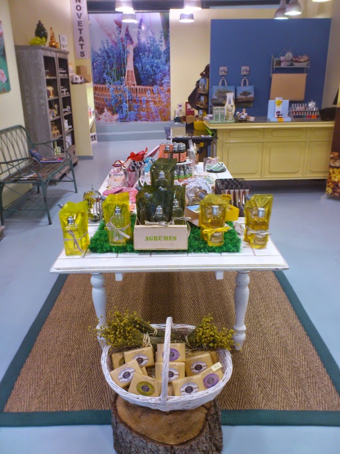 Empezamos por la marca L"Occitane. Eva siente predilección por esta marca ya que la conoce a la perfección. Ella reconoce que no es una marca totalmente natural pero insiste mucho en la calidad de sus productos. Ofrece una gama amplísima de productos y de aromas exclusivos.