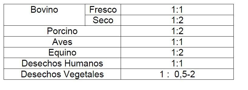 Excretas animales y/o material orgánico disponible diariamente en la finca. Se ha de tener en cuenta