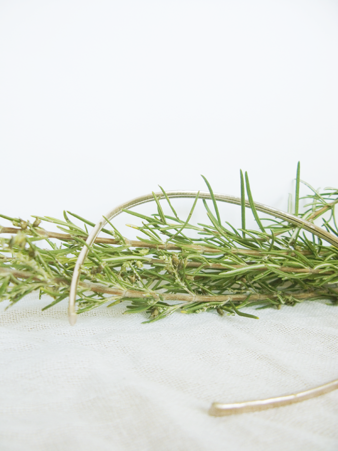 Principalmente necesitaréis romero, claro. Para dar forma redonda yo he reutilizado una antigua diadema y para atar las ramas hilo.