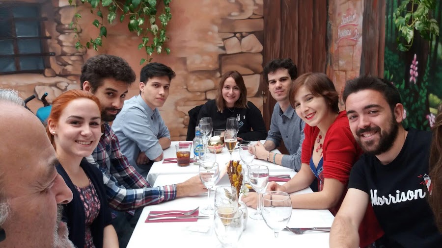 interesante conversación. El final, no tuvo precio. Ver a Xavi y a María Tejero cantando por Pimpinela o quedarme al borde de la afonía intentando seguir a un Diego brutal como antiguo cantante de Jotas que es (imagina el nivel), querer convencer sin éxito a Juanra y a Javi para que se decidieran a seguirnos,... fueron momentos inolvidables.