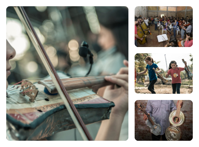 La música se convierte en un elemento motivador y de promoción para niños y jóvenes que viven en condiciones precarias que les permite desarrollar la creatividad, aprender no solo música sino también el oficio de luthería y le brinda oportunidades para mejorar su futuro. El mundo nos envía basura nosotros le devolvemos música afirma su director, hoy estos chicos recorren el mundo tocando su música!
