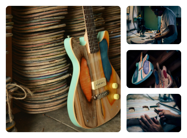 El proyecto de Nick Pourfard nace de la idea de unir su pasión por el skate y la música y así surge Prisma Guitars que mediante un trabajo 100% artesanal en el garaje de su casa convierte la madera de skates en desuso y rotas en guitarras.