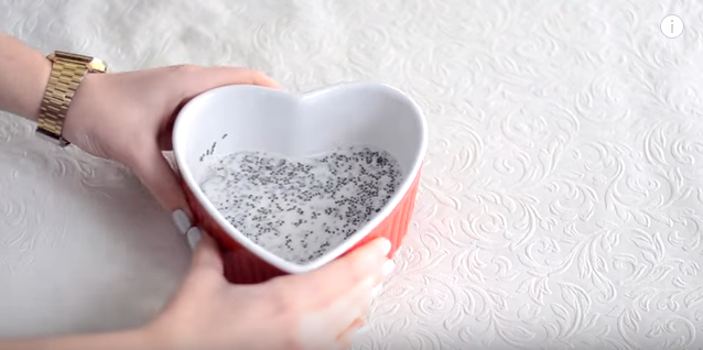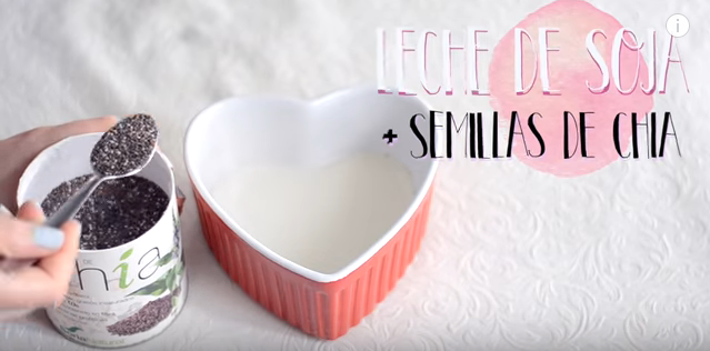 1. En primer lugar, echamos la leche en un recipiente y añadimos las semillas de chía hasta conseguir una masa compacta.