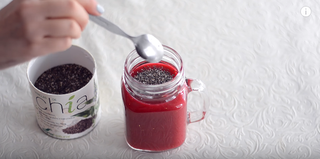 3. Colocamos la mezcla en un vaso y añadimos las semillas de chía.