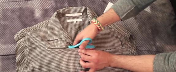 1. Coge tu camisa y extiéndela muy bien para poder recortar las mangas y la parte superior.