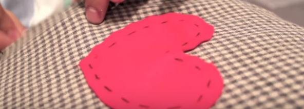 7. Corta la figura de un corazón en un trozo de tela rojo