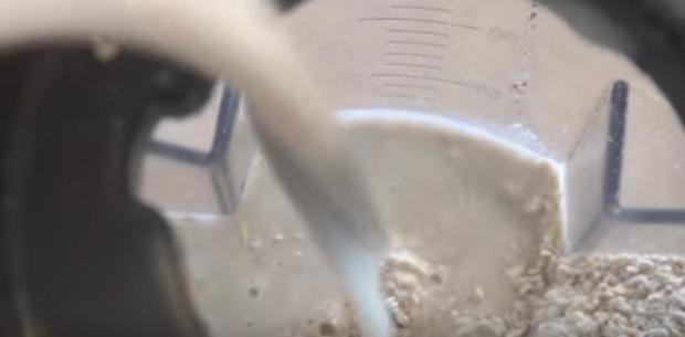 3. Una vez la tengas es hora de echar la avena triturada del paso 1. Y añade otra 1/2 taza de leche y remueve muy bien.