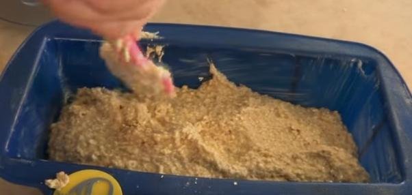 4. Cuando tengas todos lo ingrediente bien mezclados, tienes que echar la masa en un molde que sirva para hornear. Si no es de plástico o especial para este tipo de elaboraciones pon un poco de aceite.
