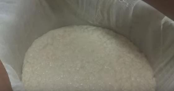 10. Una vez que este solidificado vamos a separar nuestro tofu del suero.