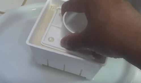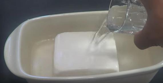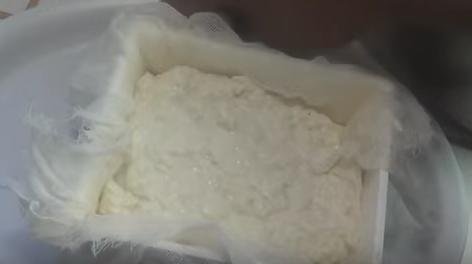 13. Ejerce presión poco a poco sobre el tofu para que suelte todo el suero.