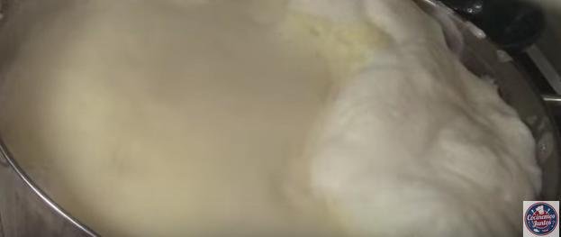 7. Y echaremos la leche sobre la tela