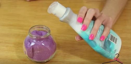 3. Echa acetona en el bote, haciendo que las esponjas se impregnen bien del producto.